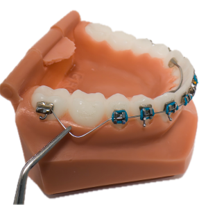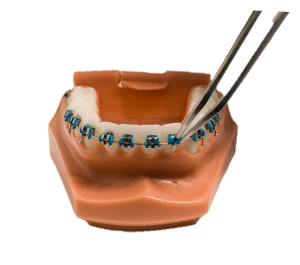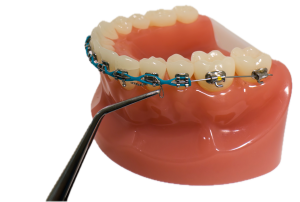 Steel ties are thin, stainless steel wires used to fasten the arch-wire to the brackets. The end of the tie is always twisted and pushed away from the gums/lips.