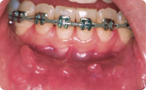 To treat irritation on the gums/lips, we recommend warm salt-water rinses as well as applying wax along the area of irritation.