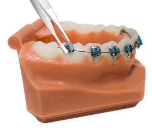 Steel ties are thin, stainless steel wires used to fasten the arch-wire to the brackets. The end of the tie is always twisted and pushed away from the gums/lips.